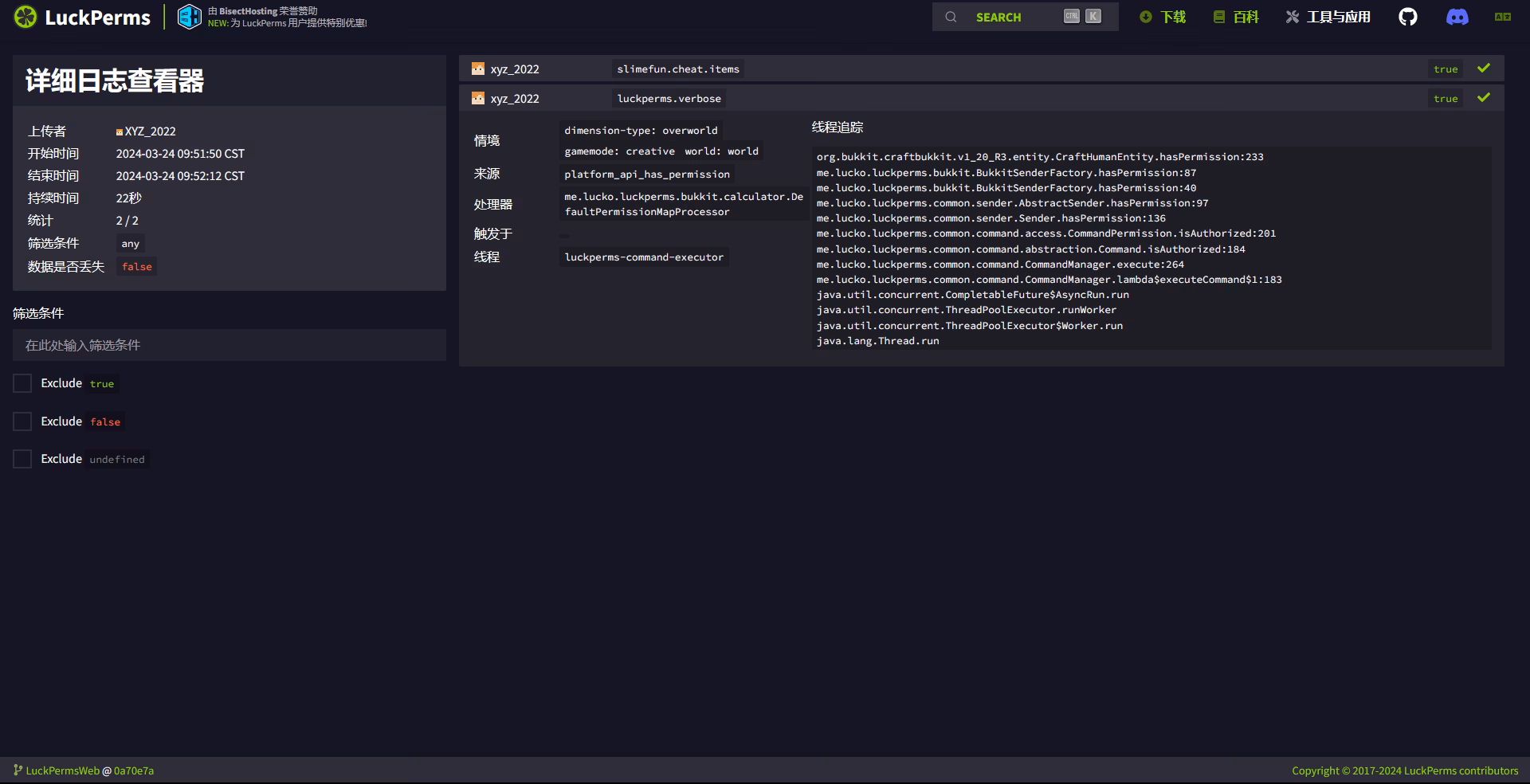 • Luck & (essentials | worldedit) - 匹配 'essentials'和'worldedit' 开头的权限检查。